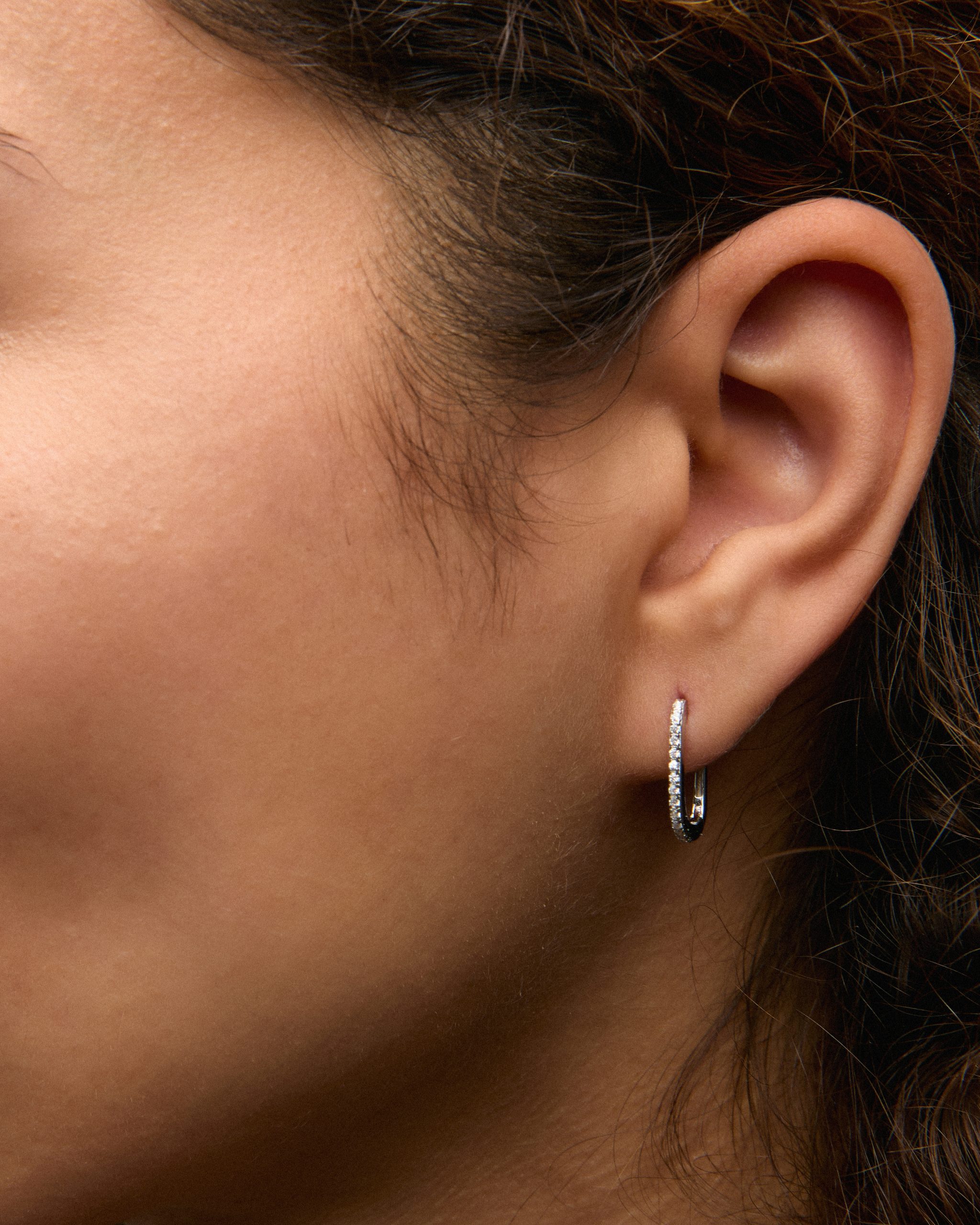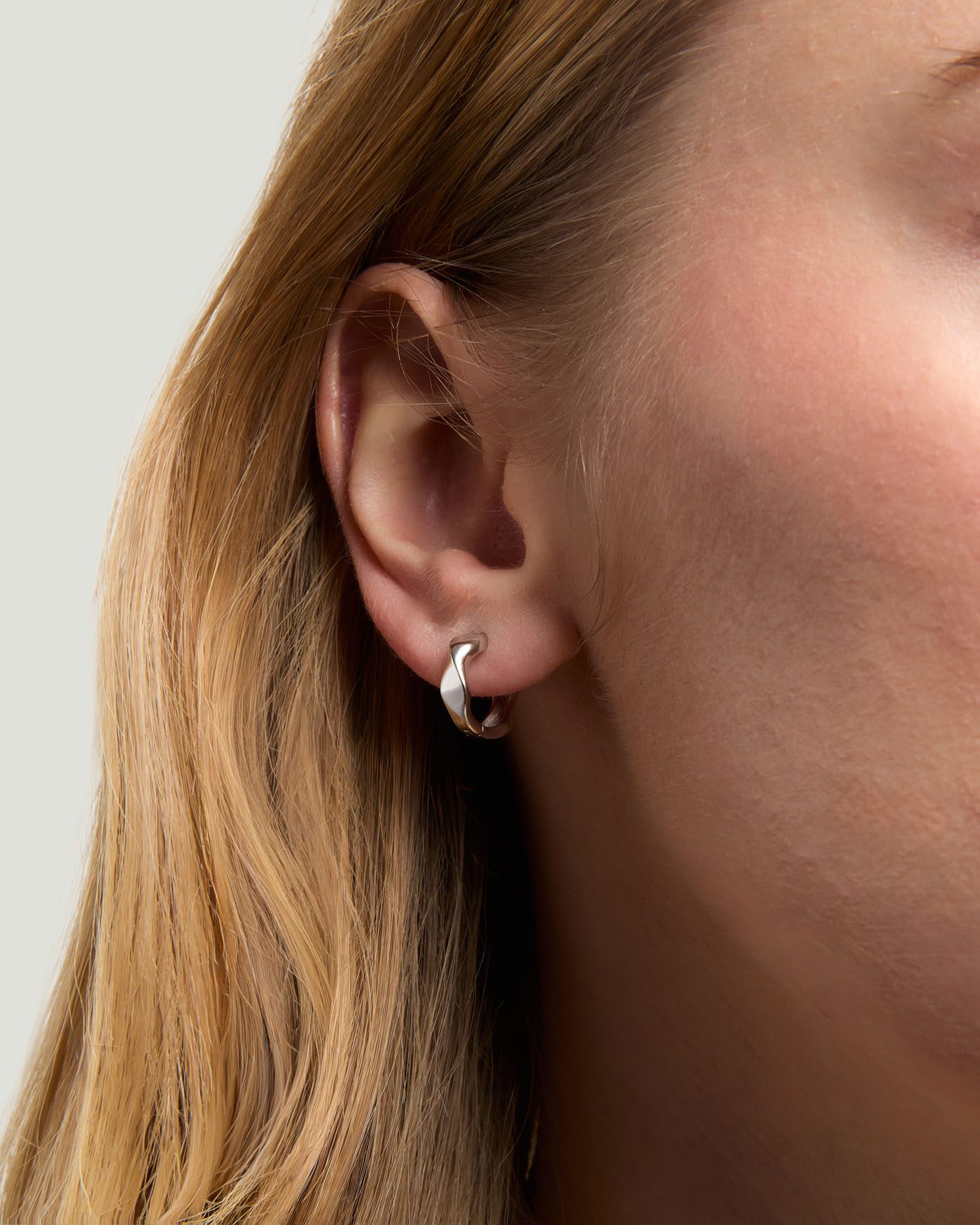 925 Gümüş Rodiyum Kaplama Dalgalı Hoopie Küpe