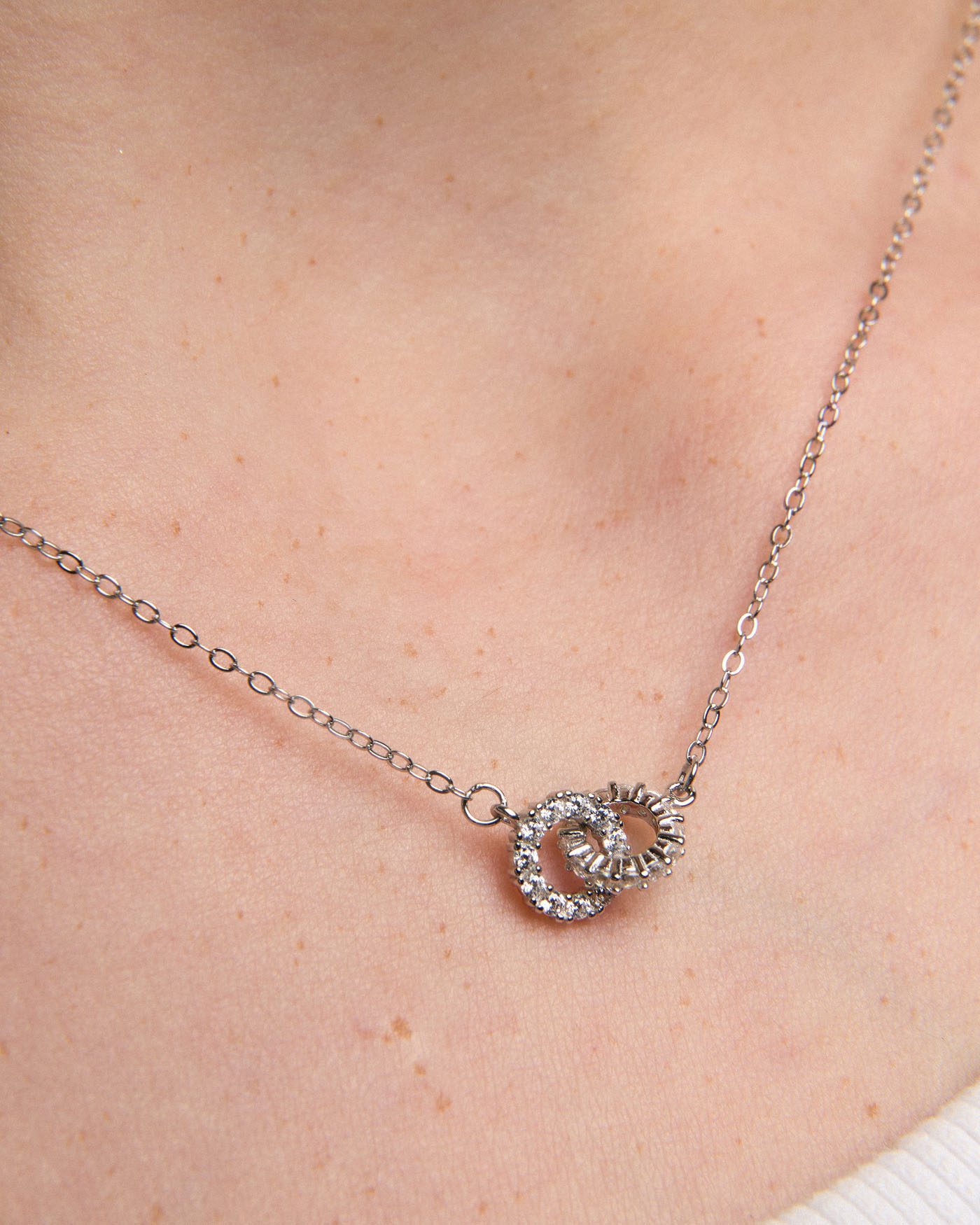 925 Ayar Beyaz Altin Kaplama Zircon Taşlı Yuvarlak Halkalı Gümüş Kolye