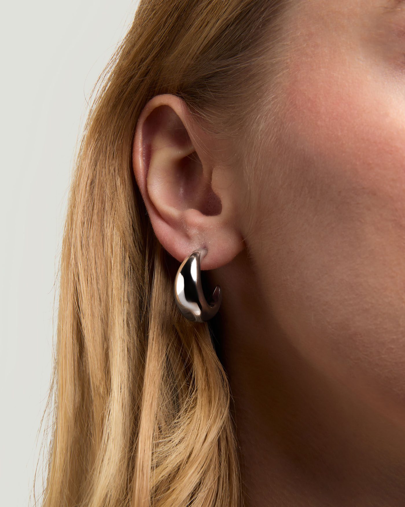 925 Ayar Gümüş Rodiyum Kaplama Asimetrik Hoop Küpe