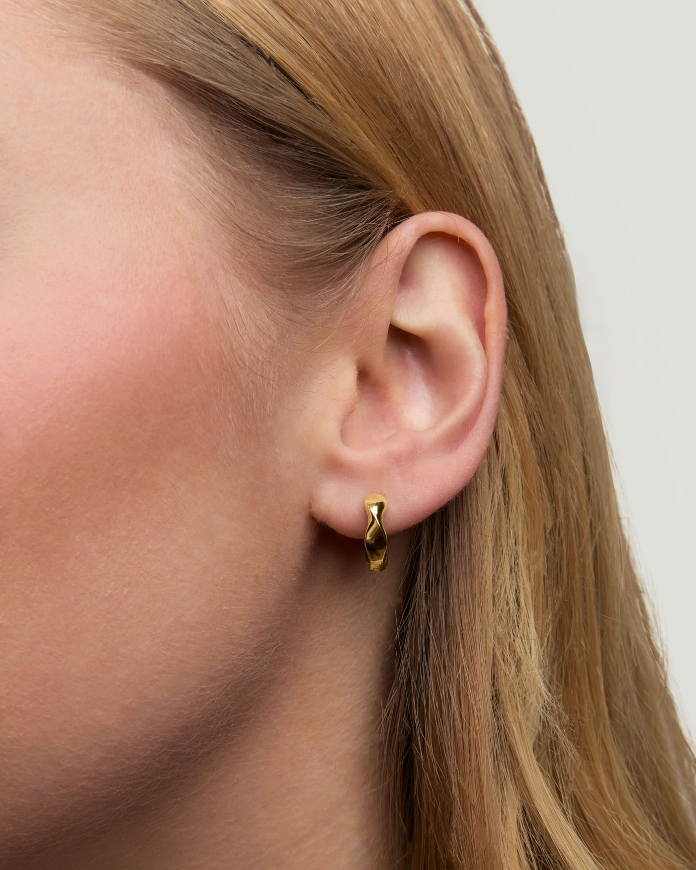 925 Gümüş Altın Kaplama Dalgalı Hoop Küpe
