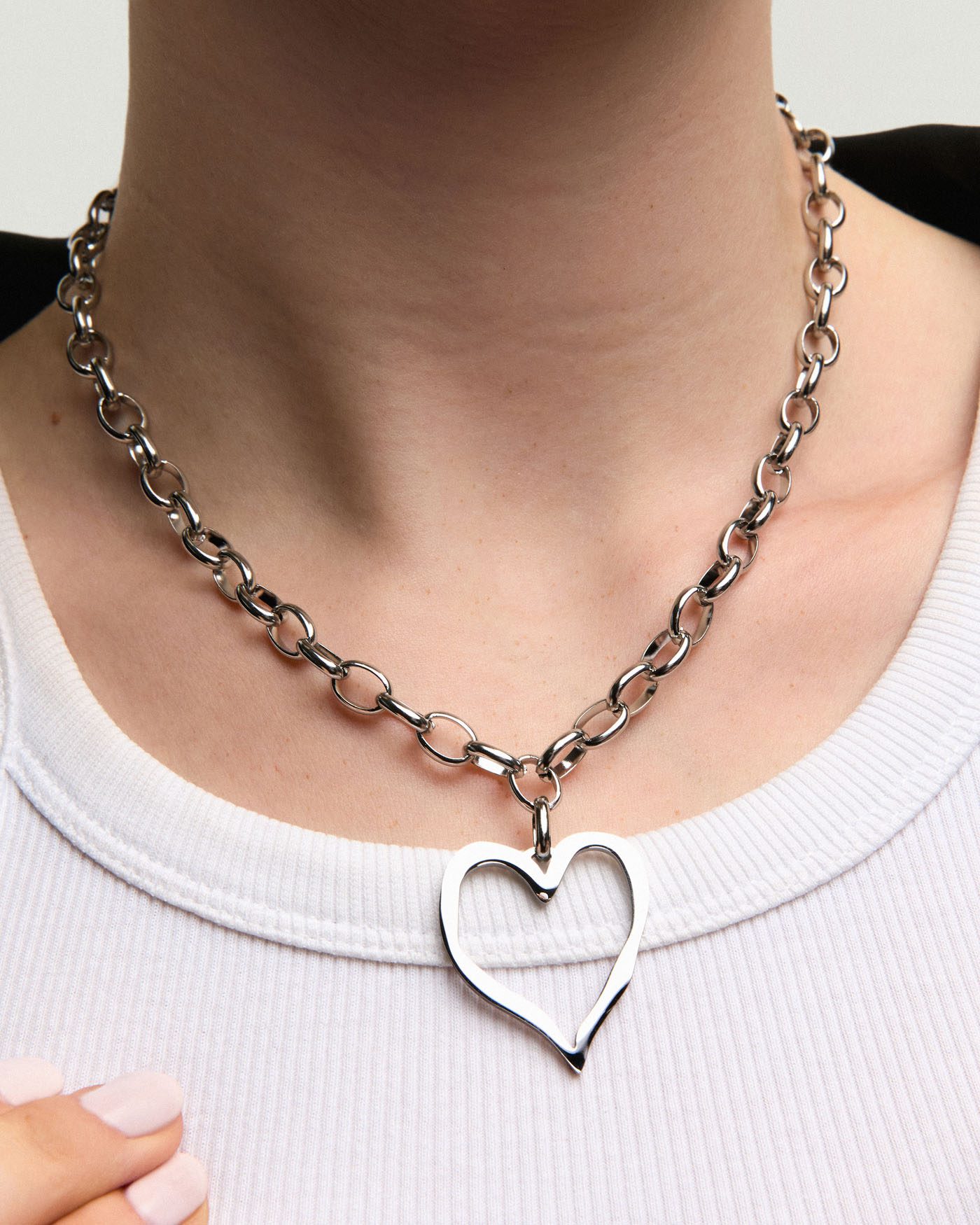 Gümüş Renkli Kalpli Modern Kolye