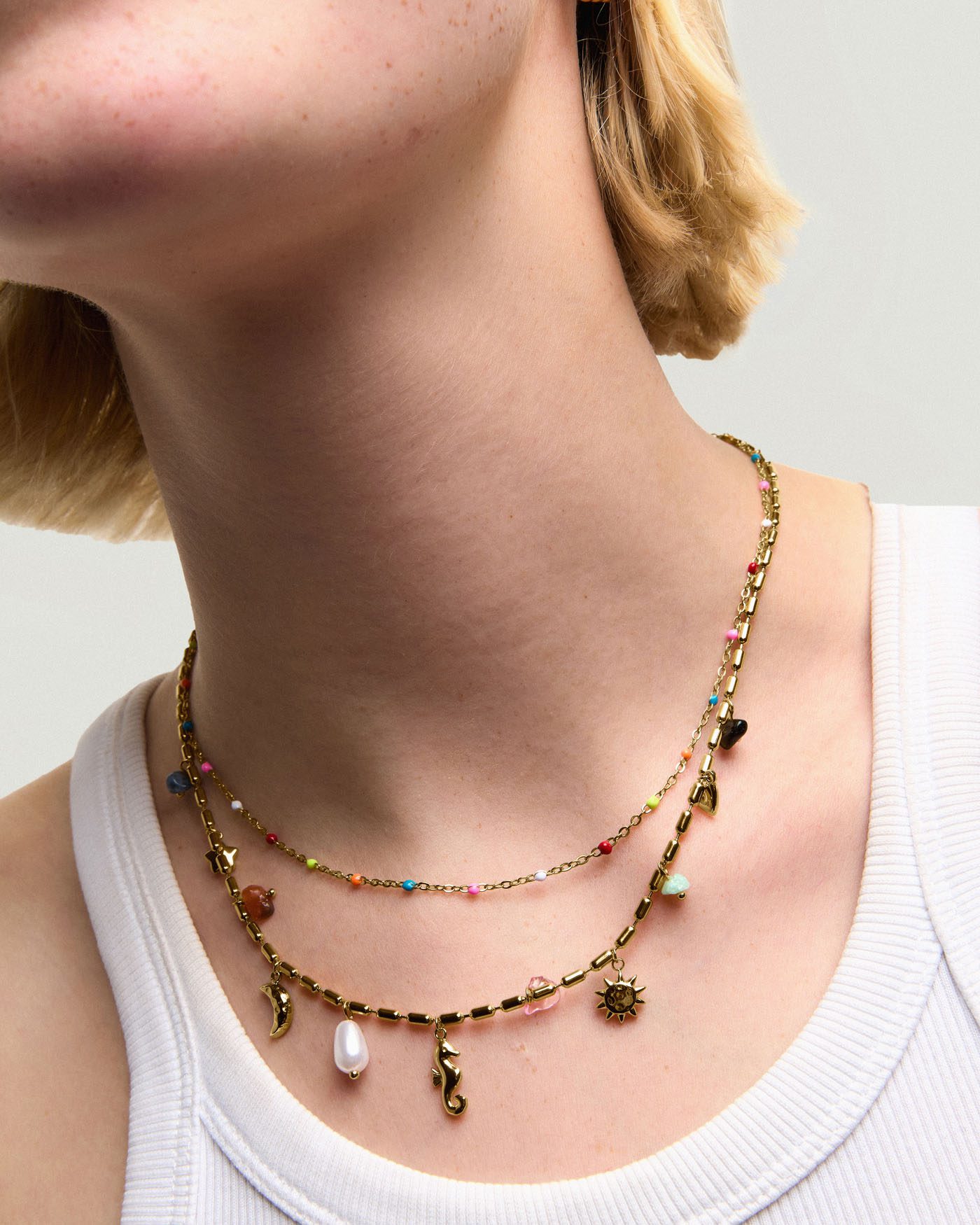 Çift Katmanlı Güneş & Plaj Temalı Altın Kaplama Kolye