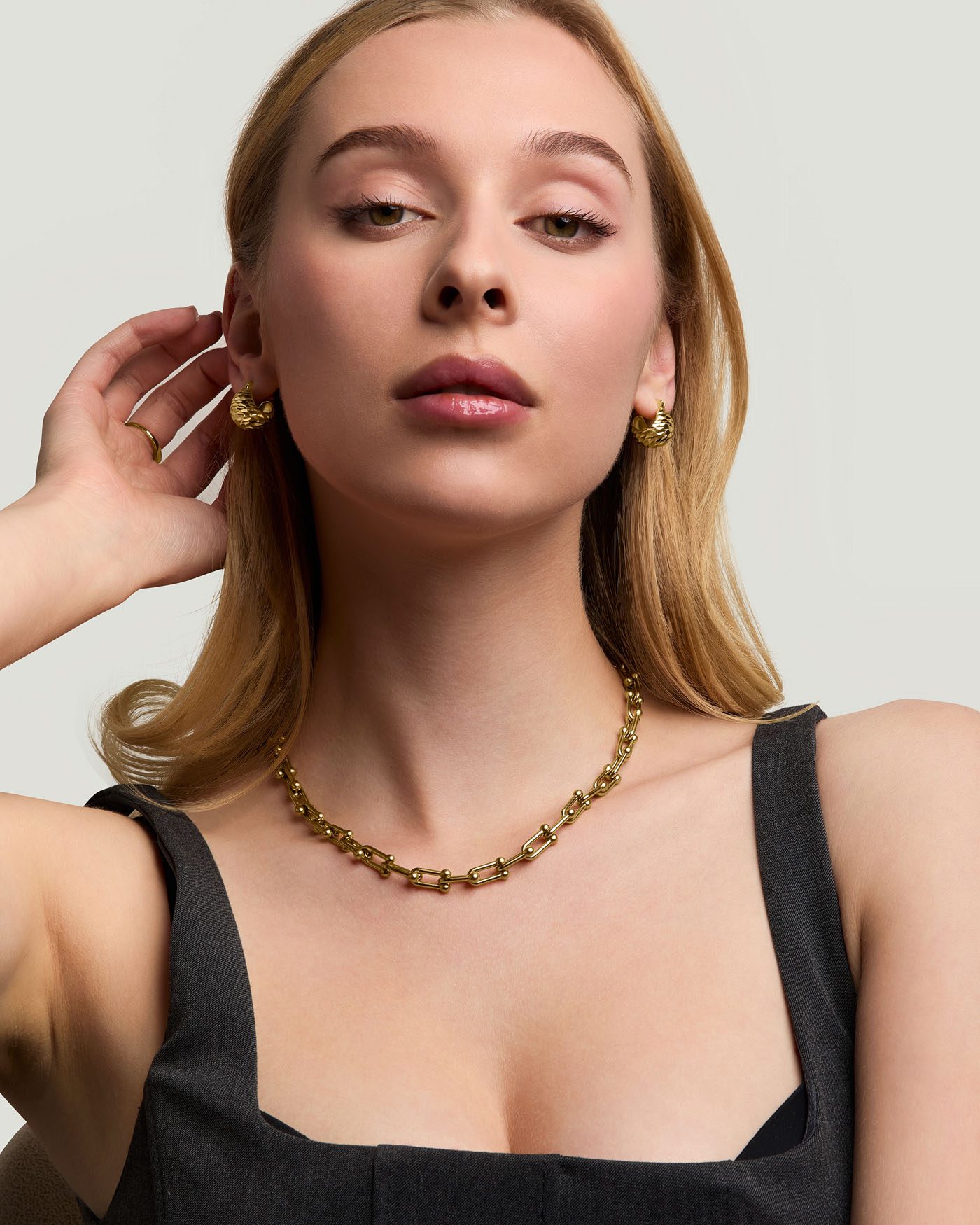 5,8 gramlık dengeli ağırlığı sayesinde kulakta tok ama rahat bir his verir. Hipoalerjenik yapısı ve suya, tere, neme dayanıklı yüzeyi ile hem günlük kullanımda hem de özel anlarda güvenle tercih edilebilir. Tek başına güçlü bir stil yaratır; diğer altın kaplama parçalarla rahatça kombinlenebilir.